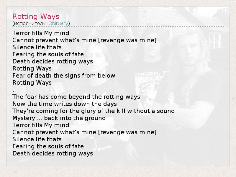 А как ты думаешь, о чем песня "Rotting Ways" ?