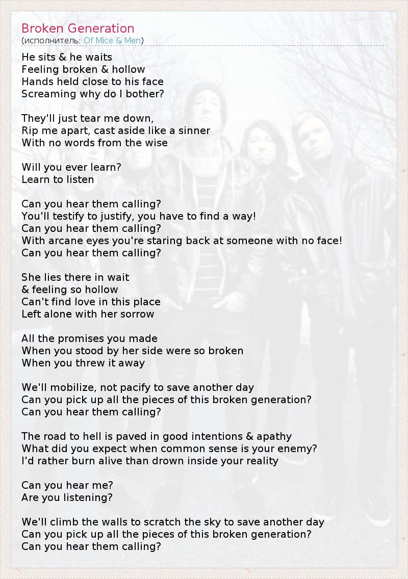 А как ты думаешь, о чем песня "Broken Generation" ?