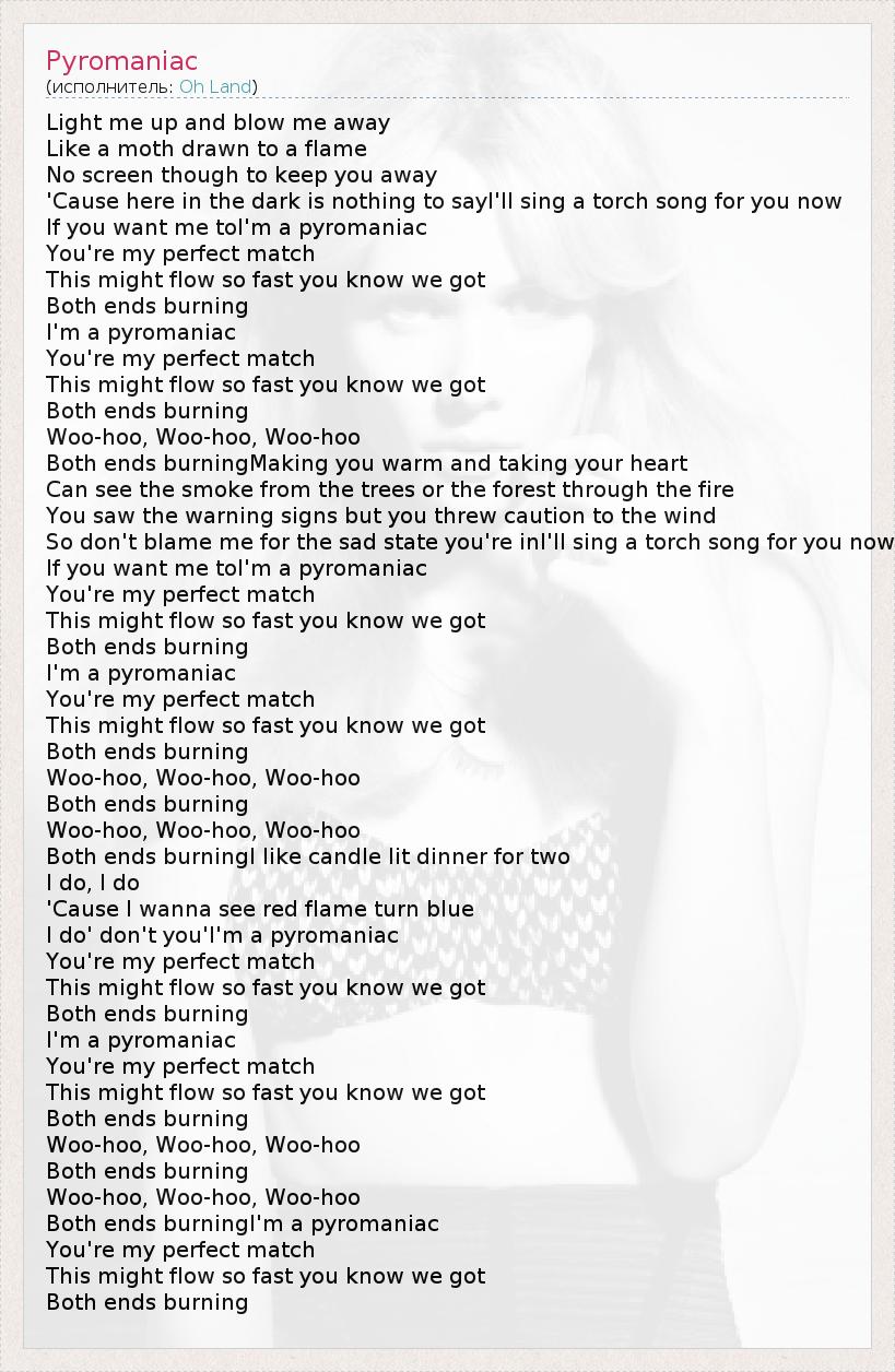 А как ты думаешь, о чем песня "Pyromaniac" ?