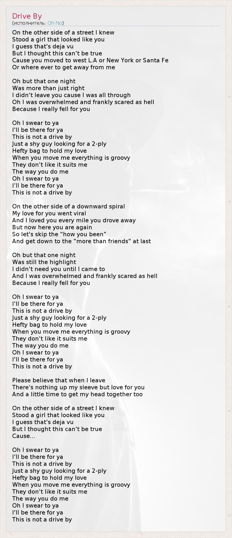* дословно: убийство, совершённое из проезжающего мимо автомобиля; в контексте песни имеется в виду, что это было не мимолётное чувство, не на одну ночь