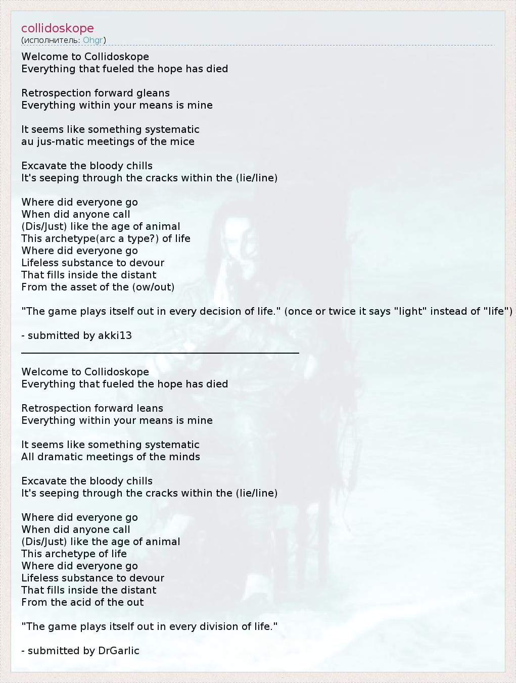 А как ты думаешь, о чем песня "collidoskope" ?