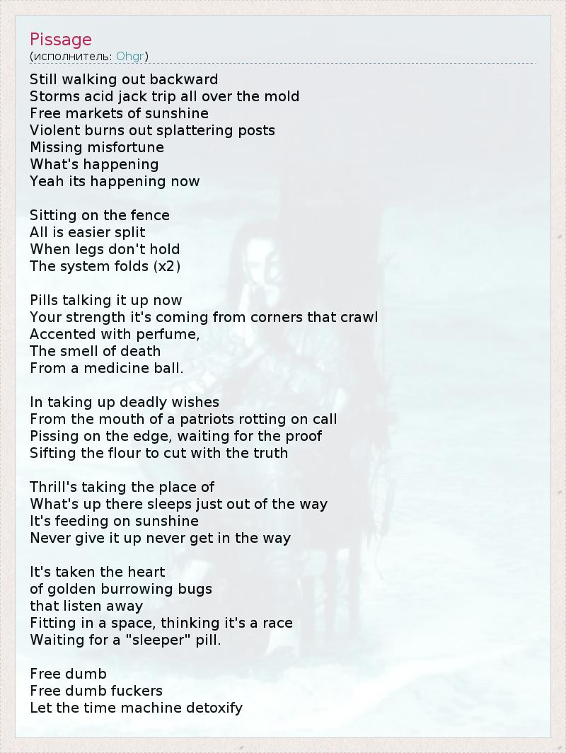 Это интересно:Нивек Огр (Nivek Ogre), настоящее имя Кевин Грэхам Оджилви (Kevin Graham Ogilvie) родился 5 декабря 1962 года в Ванкувере (Канада). Был дисторшн-вокалистом звёздных канадских индустриальщиков Skinny Puppy и на момент выхода из группы в 1995 уже халтурил в разных музыкальных проектах. Перед самым уходом из Skinny Puppy, вместе со своим продюсером Марком Уолтом (Mark Walk (работал с Pigface,... продолжение