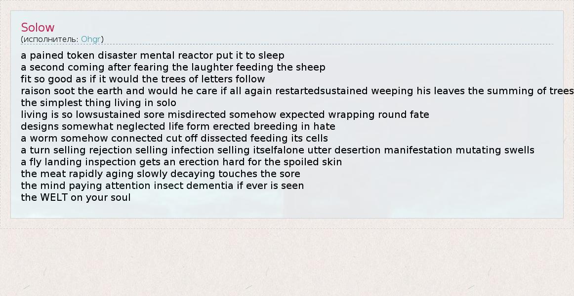 raison soot the earth and would he care if all again restartedsustained weeping his leaves the summing of trees
