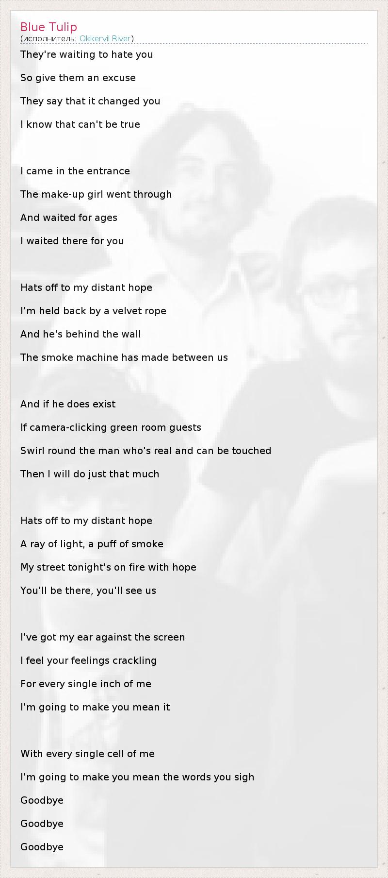 А как ты думаешь, о чем песня "Blue Tulip" ?