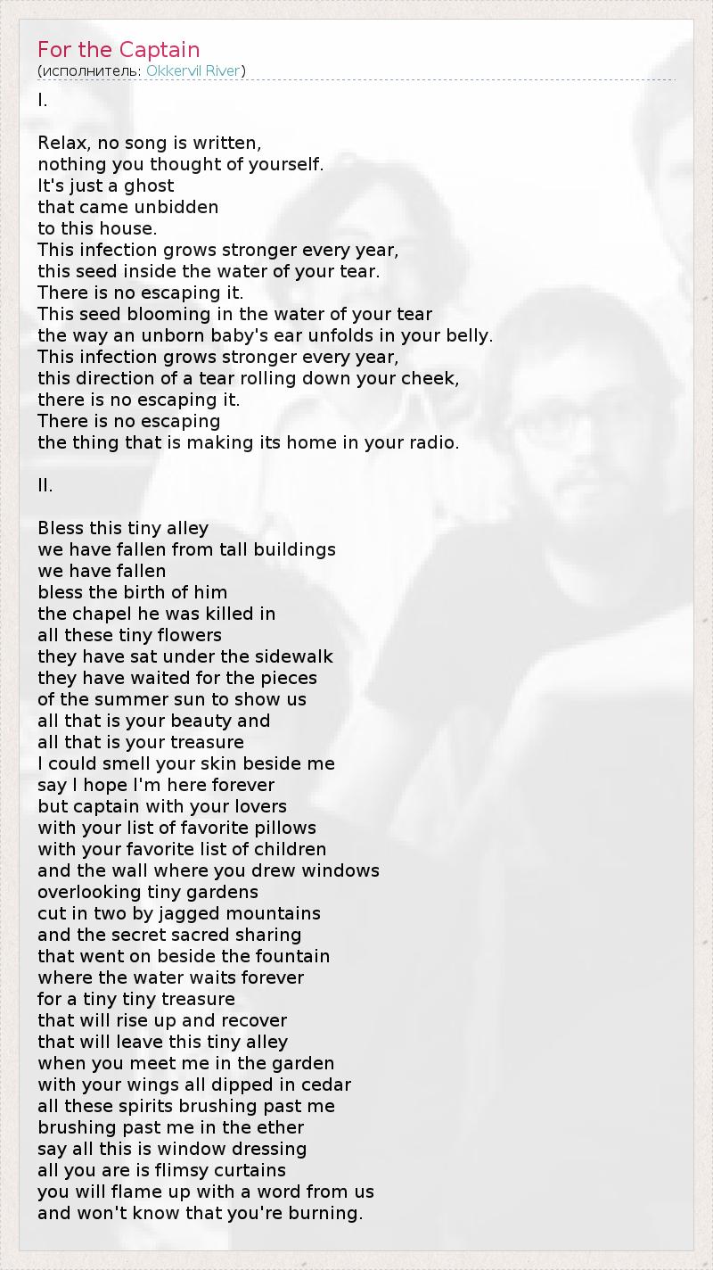 Это интересно:Okkervil River - группа, основанная в 1998 году в Остине, Техас, двумя школьными друзьями – Уиллом Шеффом (Will Robison Sheff) и Сетом Уорреном (Seth Warren). Группа получила свое название в честь рассказа Татьяны Толстой, Оккервиль – это название небольшой реки под Санкт-Петербургом, притока Невы. Первый альбом - Stars Too Small to Use – был записан группой за три дня летом 1998 года в маленькой остинской... продолжение