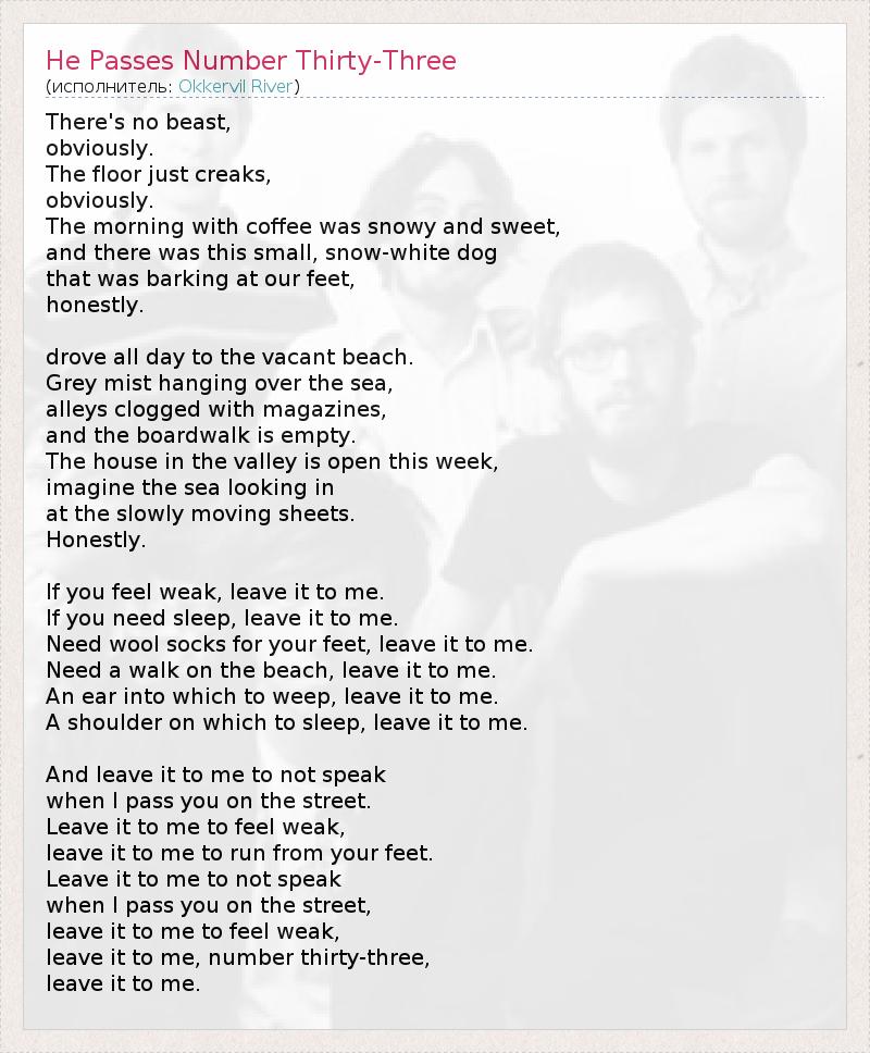 ГлавнаяИсполнителиOkkervil RiverHe Passes Number Thirty-Three
