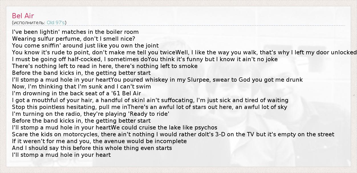 А как ты думаешь, о чем песня "Bel Air" ?