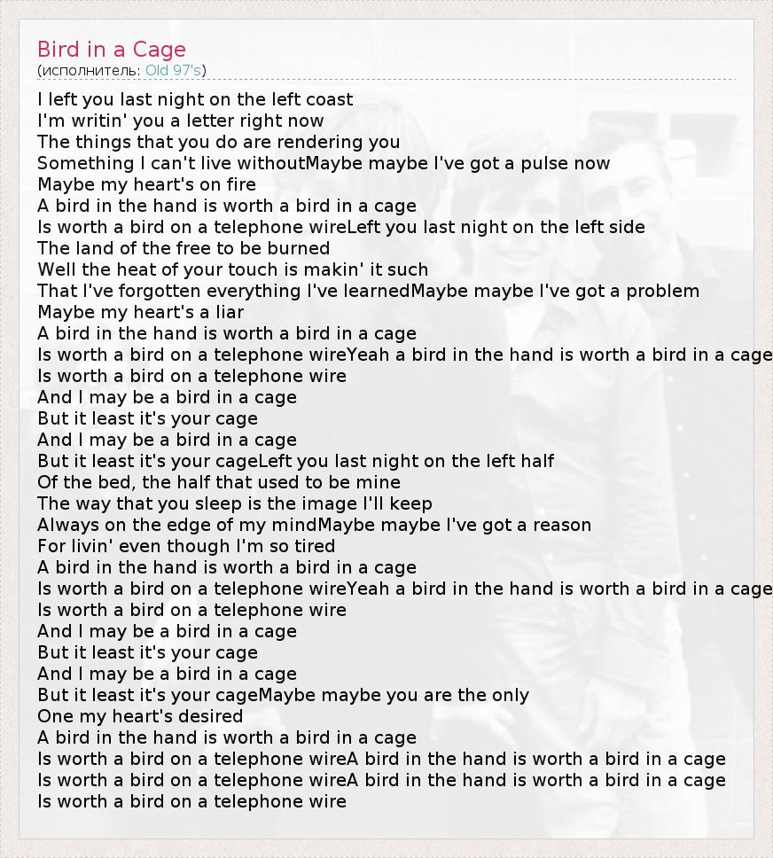 А как ты думаешь, о чем песня "Bird in a Cage" ?