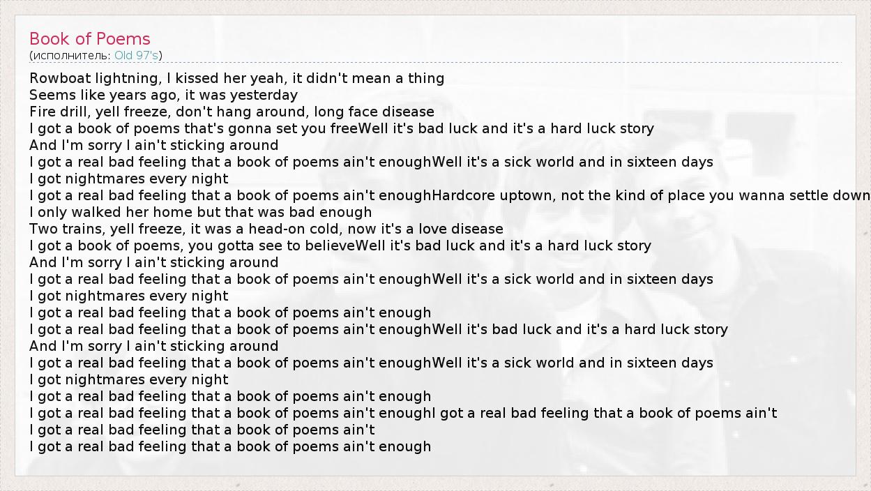 А как ты думаешь, о чем песня "Book of Poems" ?