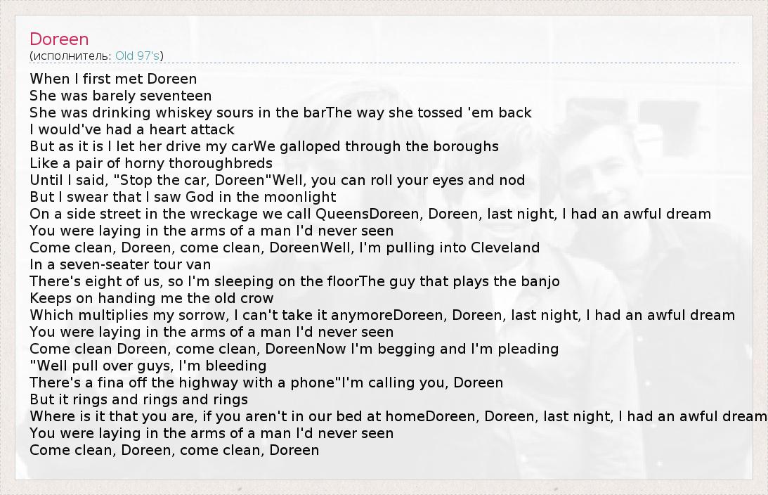 А как ты думаешь, о чем песня "Doreen" ?