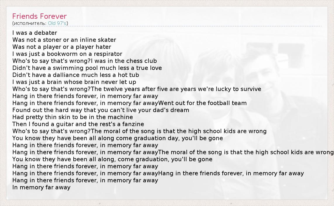 А как ты думаешь, о чем песня "Friends Forever" ?