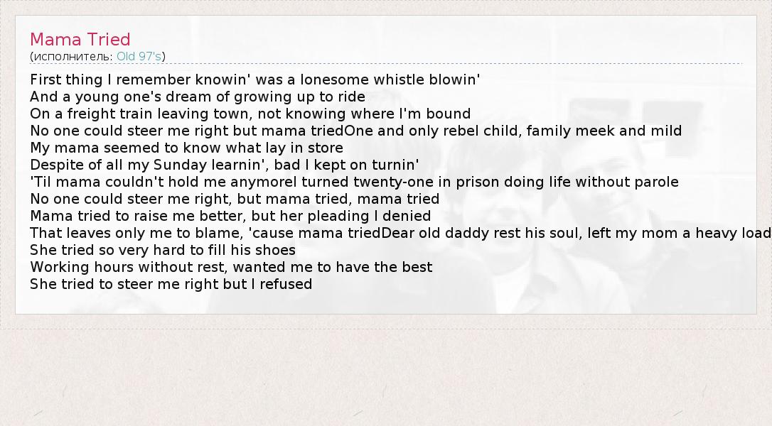 А как ты думаешь, о чем песня "Mama Tried" ?
