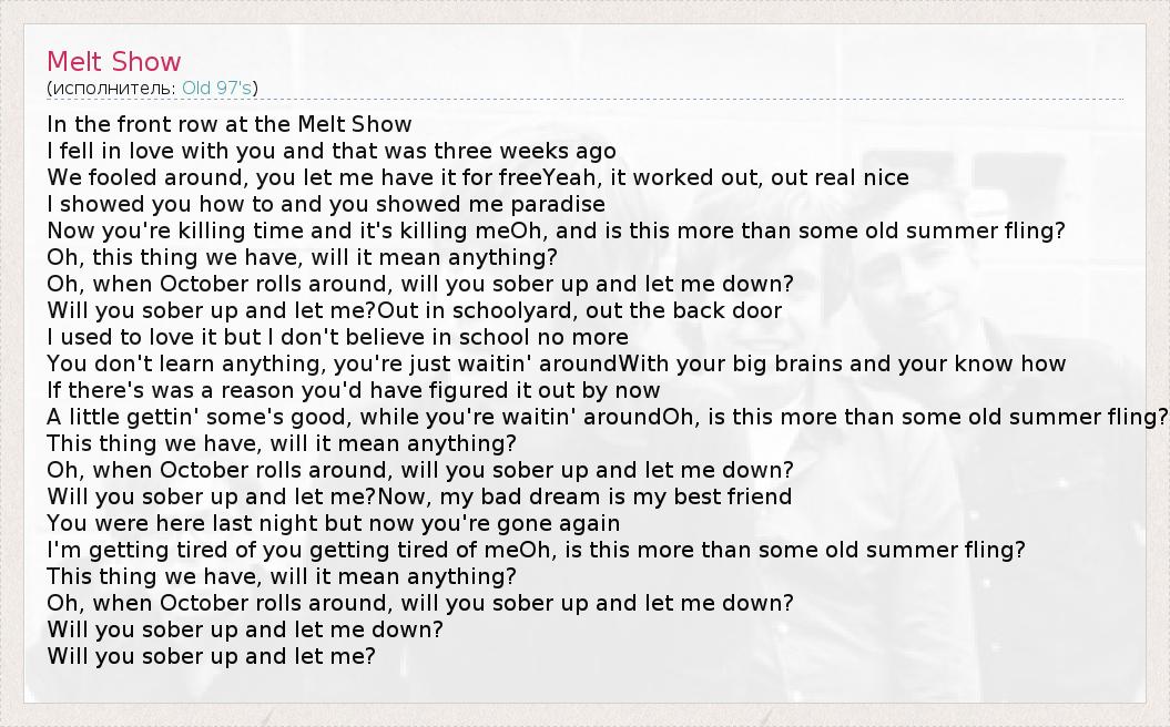 Now you're killing time and it's killing meOh, and is this more than some old summer fling?