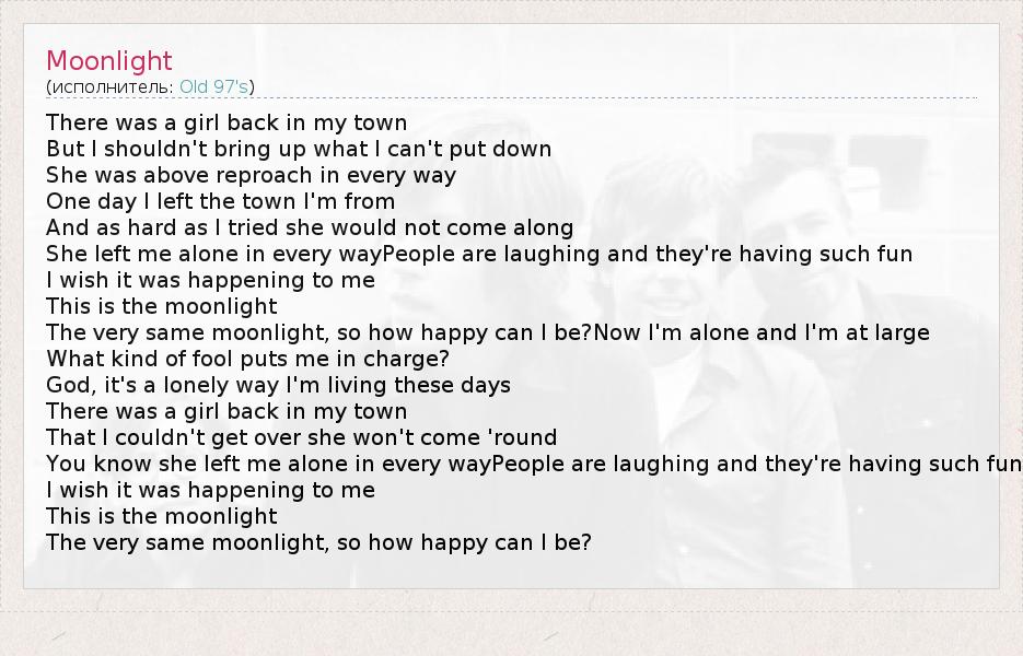 The very same moonlight, so how happy can I be?Now I'm alone and I'm at large