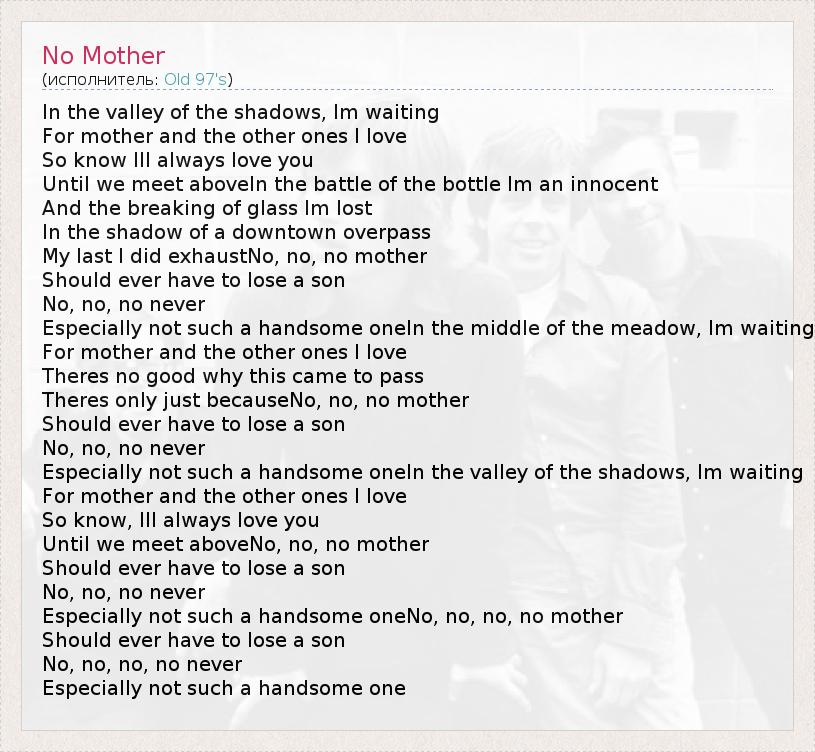 А как ты думаешь, о чем песня "No Mother" ?