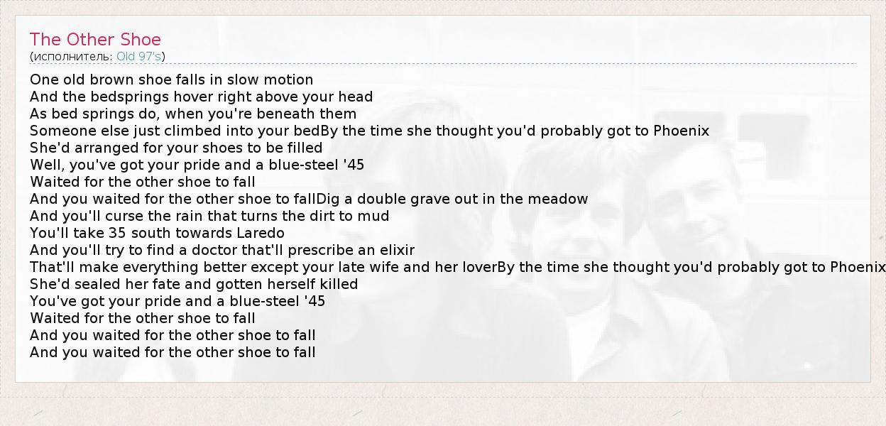 А как ты думаешь, о чем песня "The Other Shoe" ?