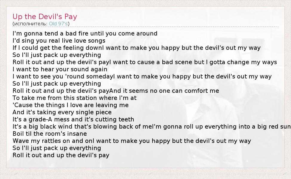А как ты думаешь, о чем песня "Up the Devil's Pay" ?