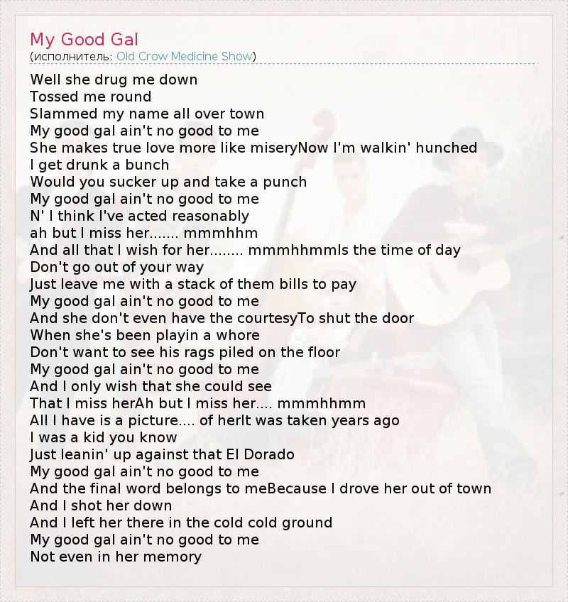 А как ты думаешь, о чем песня "My Good Gal" ?