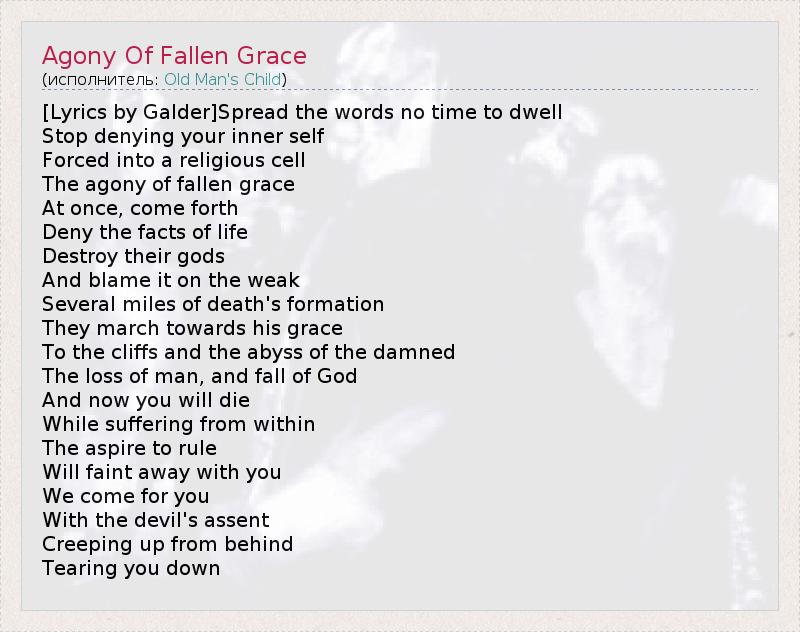 А как ты думаешь, о чем песня "Agony Of Fallen Grace" ?
