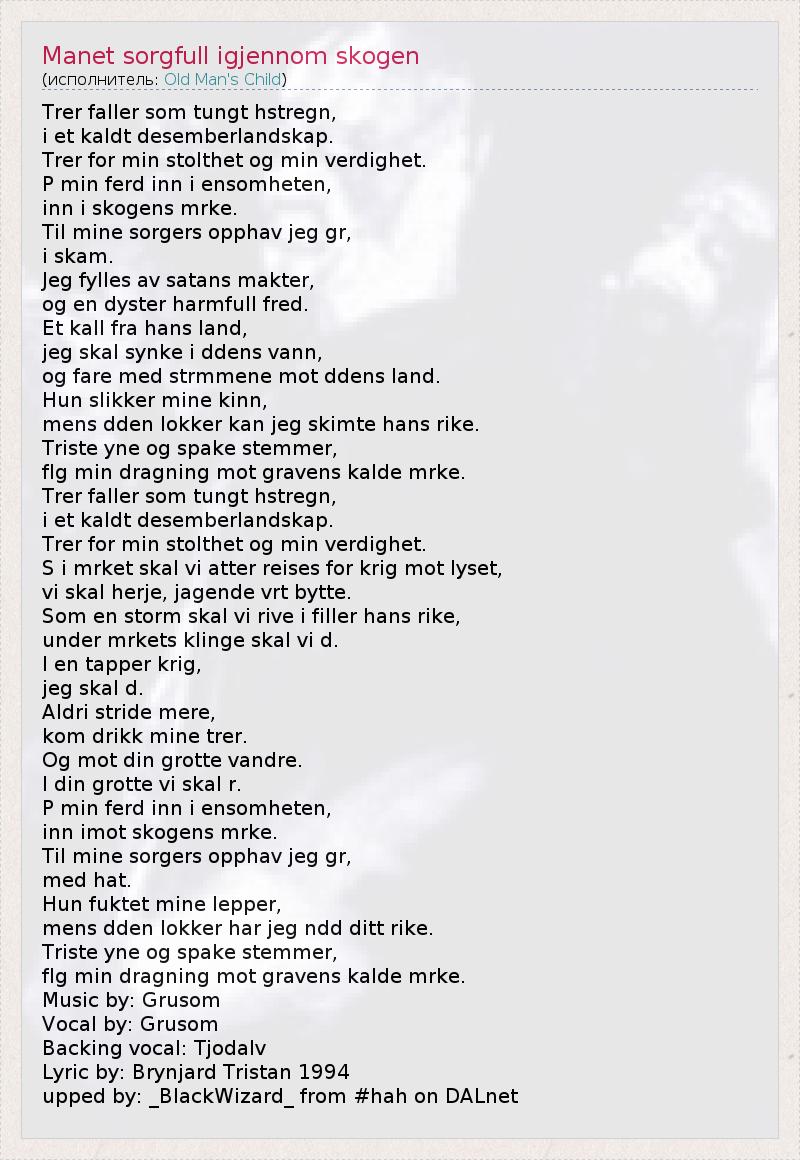 ГлавнаяИсполнителиOld Man's ChildManet sorgfull igjennom skogen