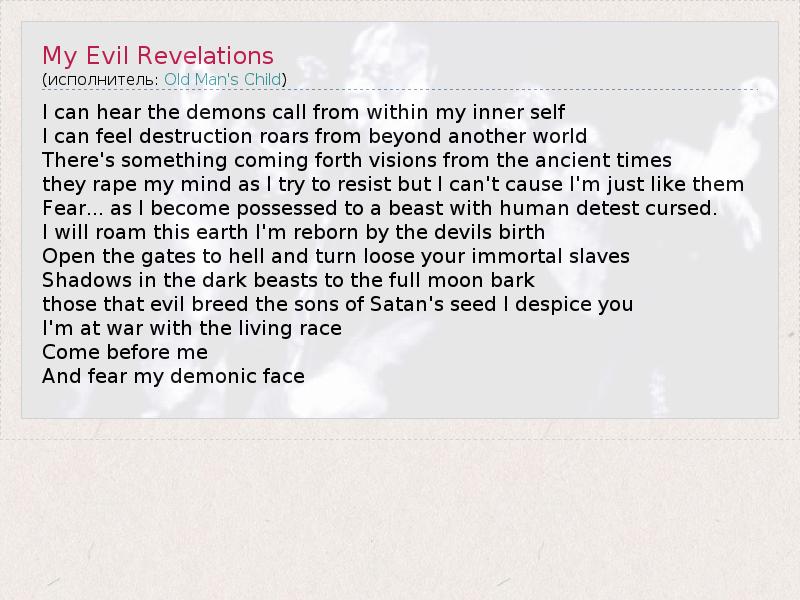 А как ты думаешь, о чем песня "My Evil Revelations" ?
