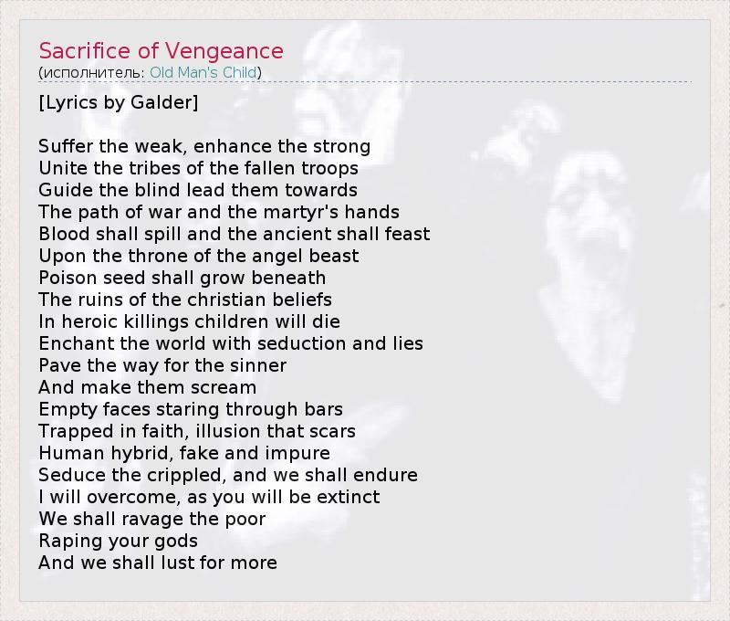 А как ты думаешь, о чем песня "Sacrifice of Vengeance" ?