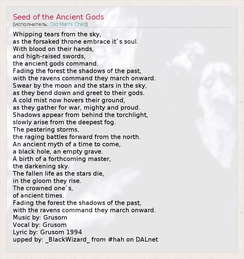 А как ты думаешь, о чем песня "Seed of the Ancient Gods" ?