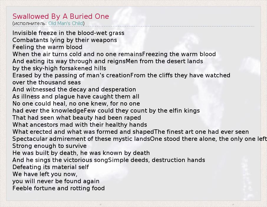 ГлавнаяИсполнителиOld Man's ChildSwallowed By A Buried One