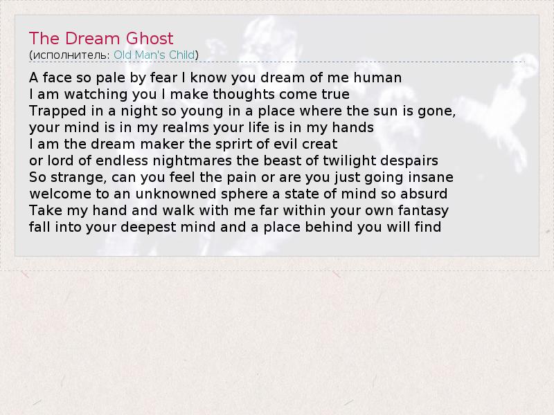 А как ты думаешь, о чем песня "The Dream Ghost" ?