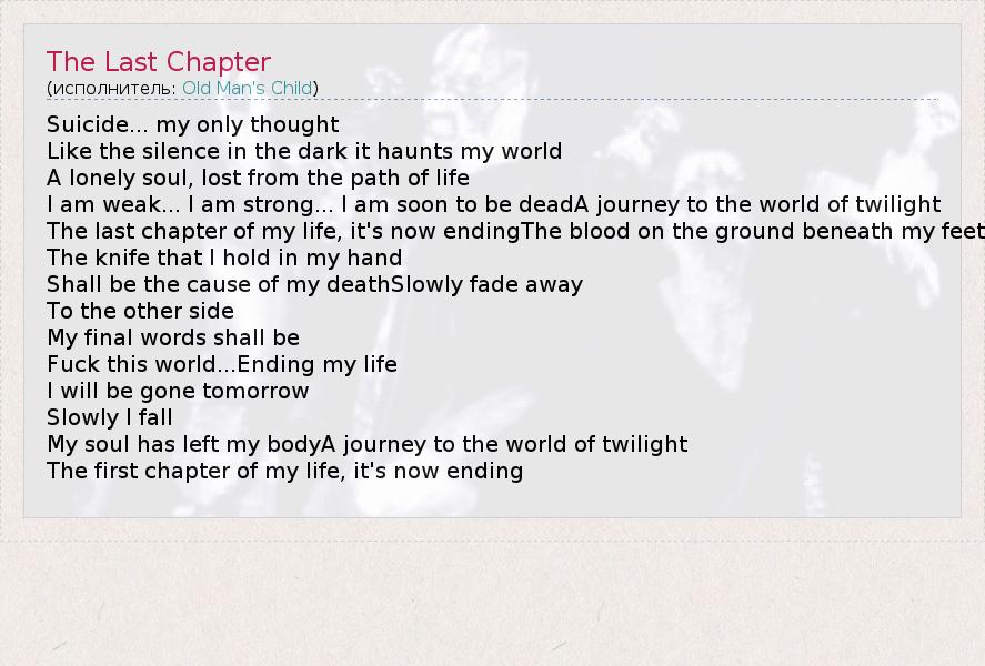 А как ты думаешь, о чем песня "The Last Chapter" ?
