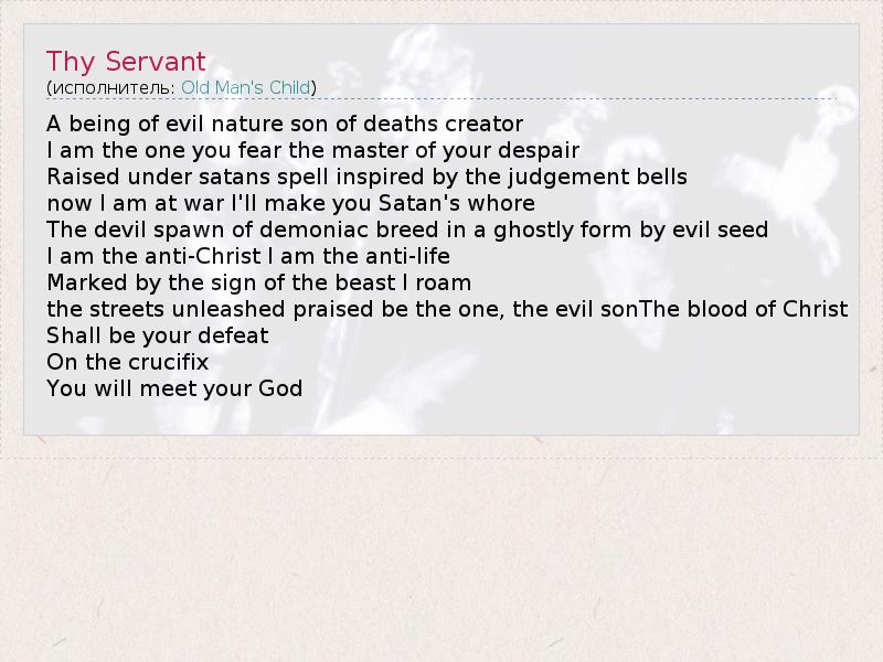 А как ты думаешь, о чем песня "Thy Servant" ?