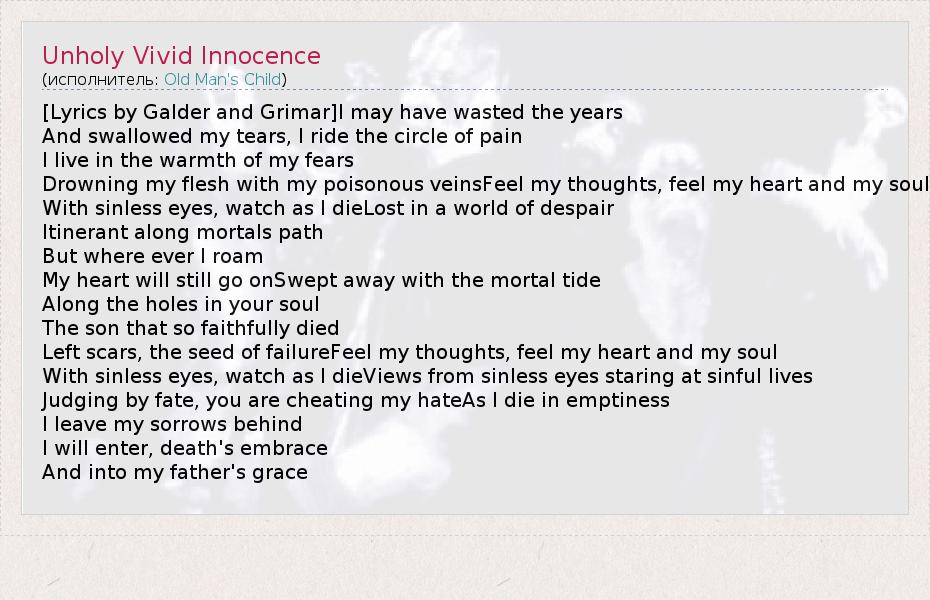 А как ты думаешь, о чем песня "Unholy Vivid Innocence" ?