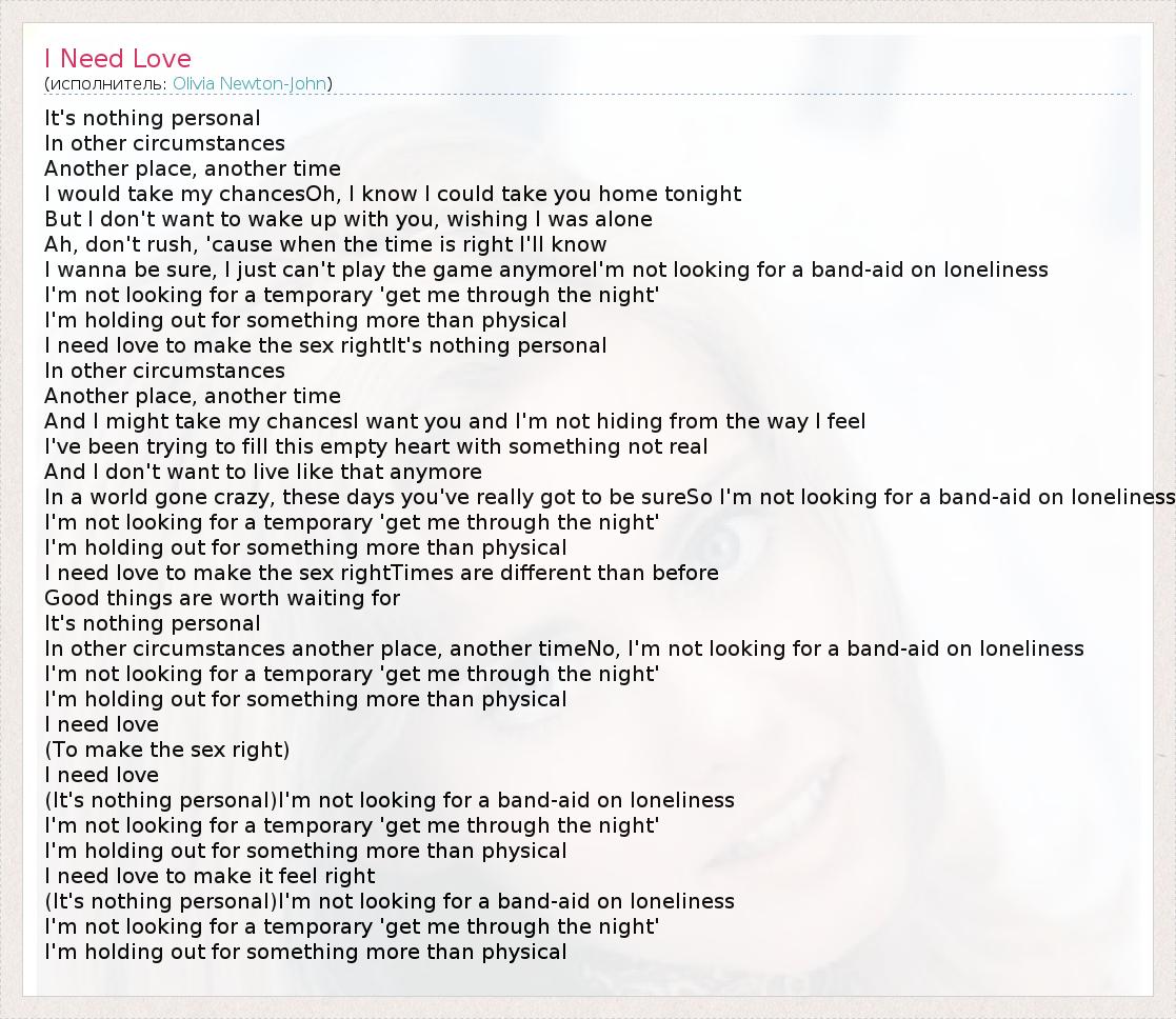 (It's nothing personal)I'm not looking for a band-aid on loneliness