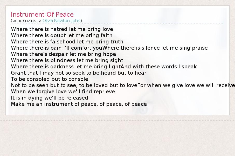 Make me an instrument of peace, of peace, of peace