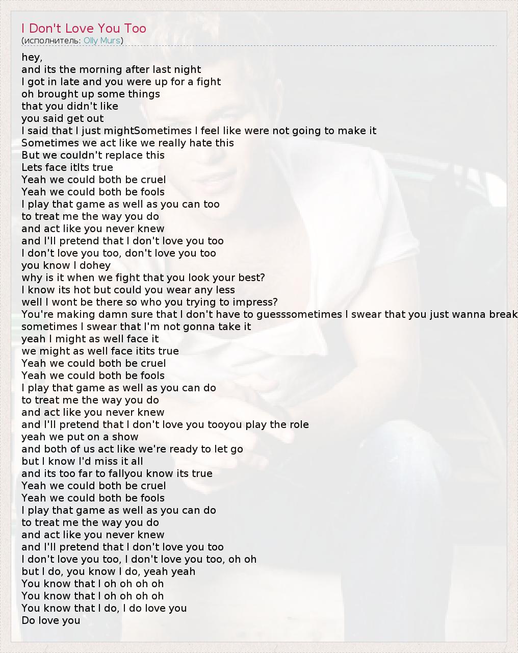 А как ты думаешь, о чем песня "I Don't Love You Too" ?