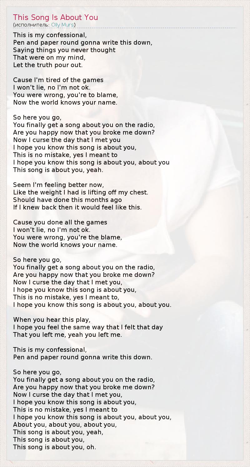 А как ты думаешь, о чем песня "This Song Is About You" ?