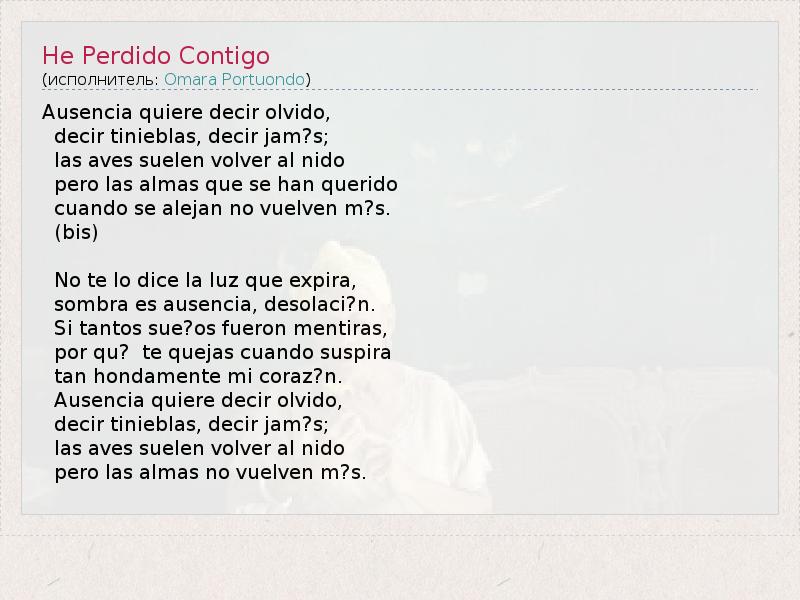 А как ты думаешь, о чем песня "He Perdido Contigo" ?