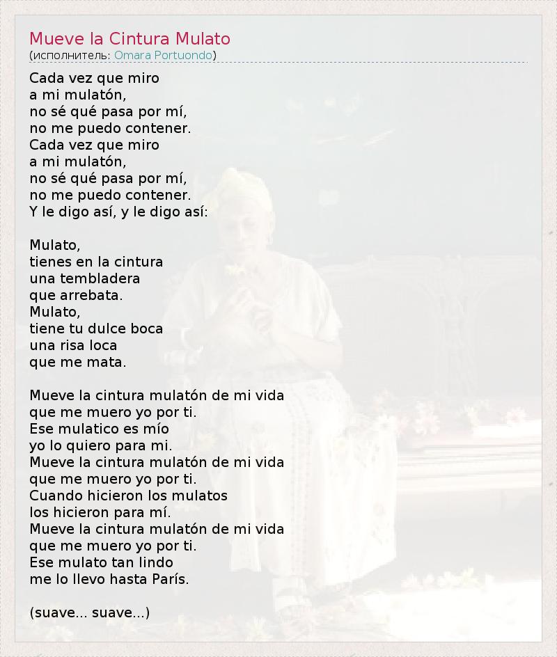 А как ты думаешь, о чем песня "Mueve la Cintura Mulato" ?
