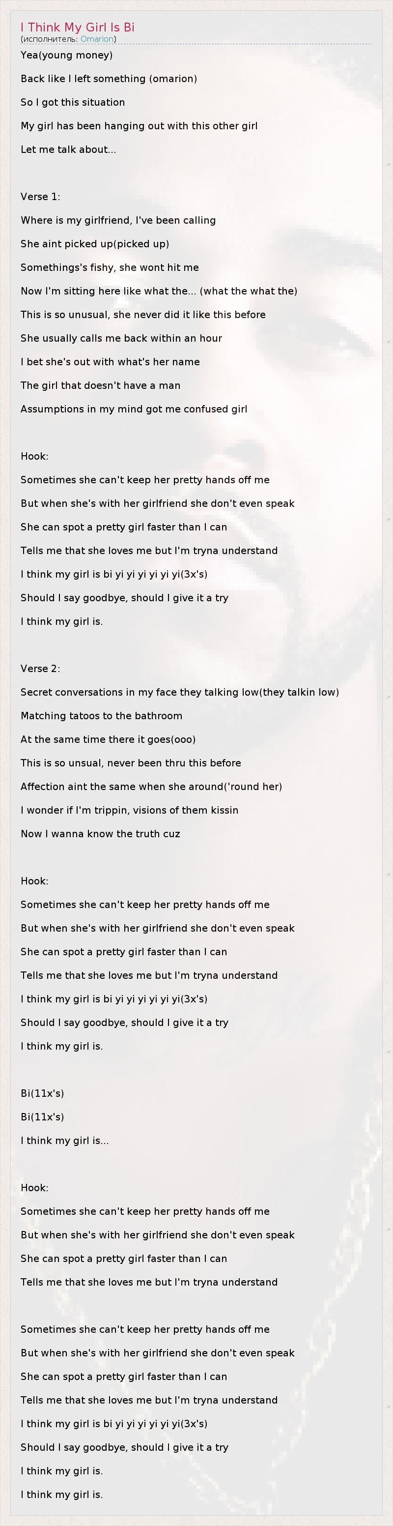 А как ты думаешь, о чем песня "I Think My Girl Is Bi" ?