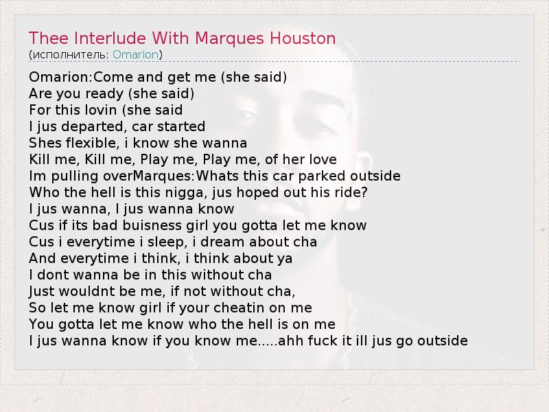 А как ты думаешь, о чем песня "Thee Interlude With Marques Houston" ?