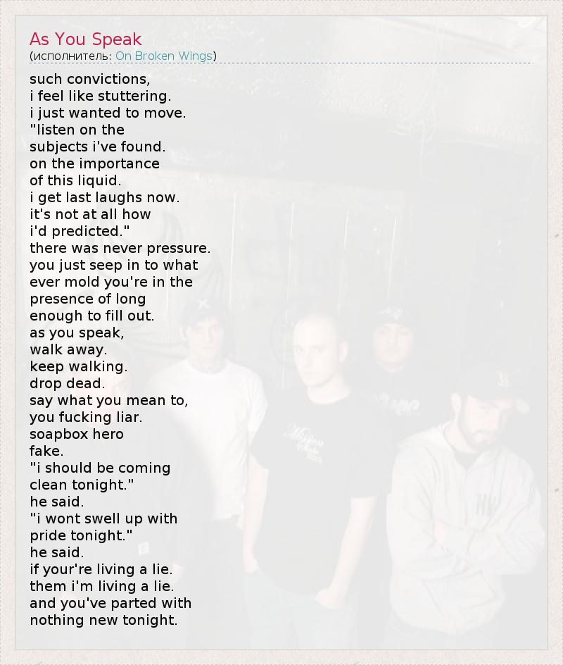 А как ты думаешь, о чем песня "As You Speak" ?