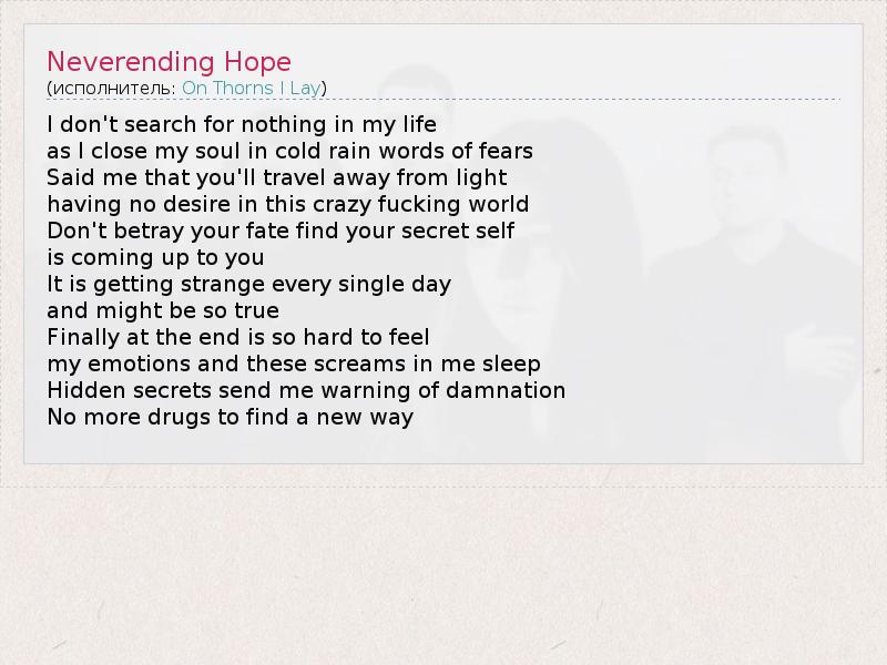 А как ты думаешь, о чем песня "Neverending Hope" ?