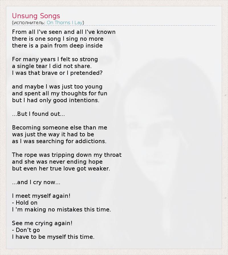 А как ты думаешь, о чем песня "Unsung Songs" ?