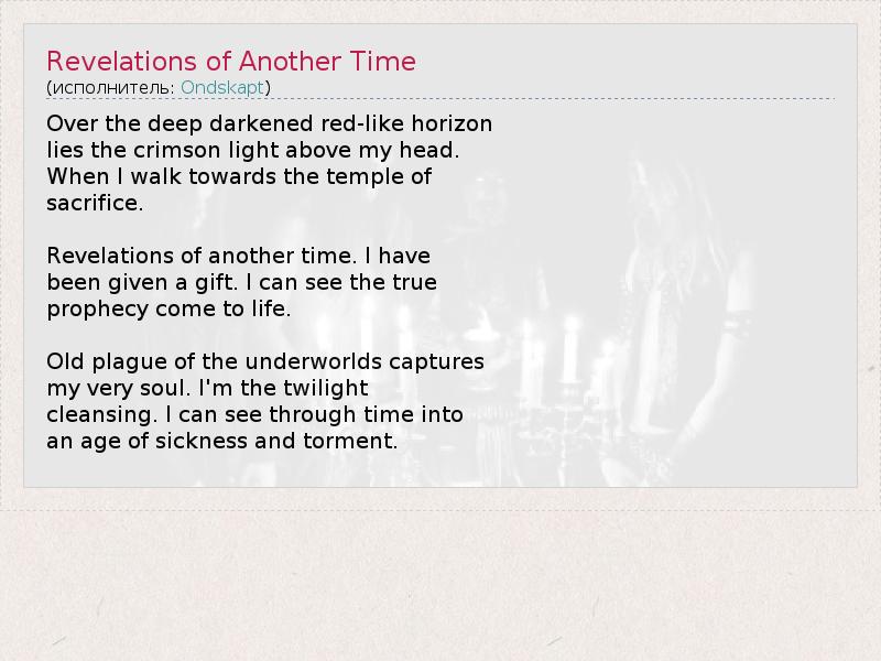 А как ты думаешь, о чем песня "Revelations of Another Time" ?