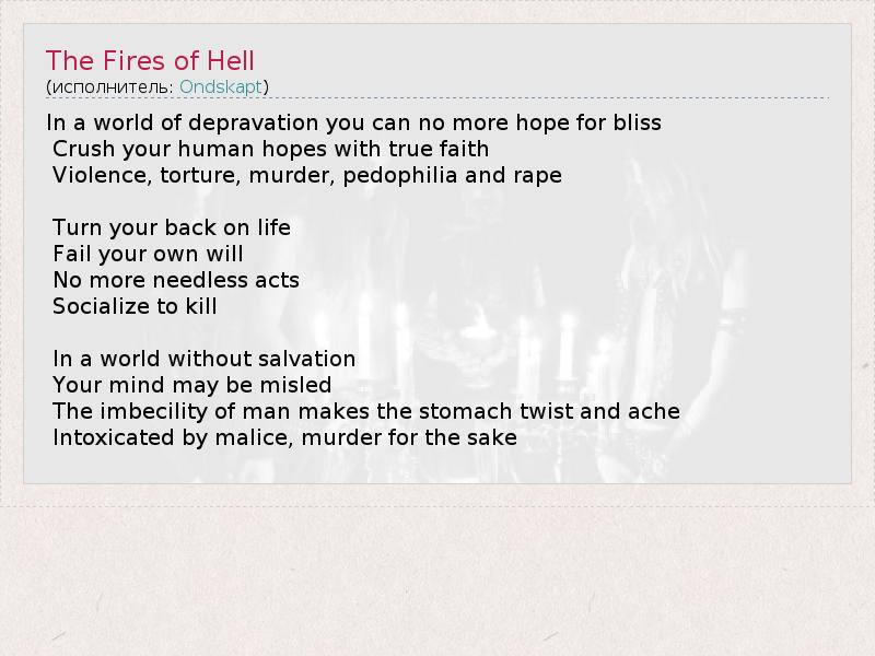 А как ты думаешь, о чем песня "The Fires of Hell" ?