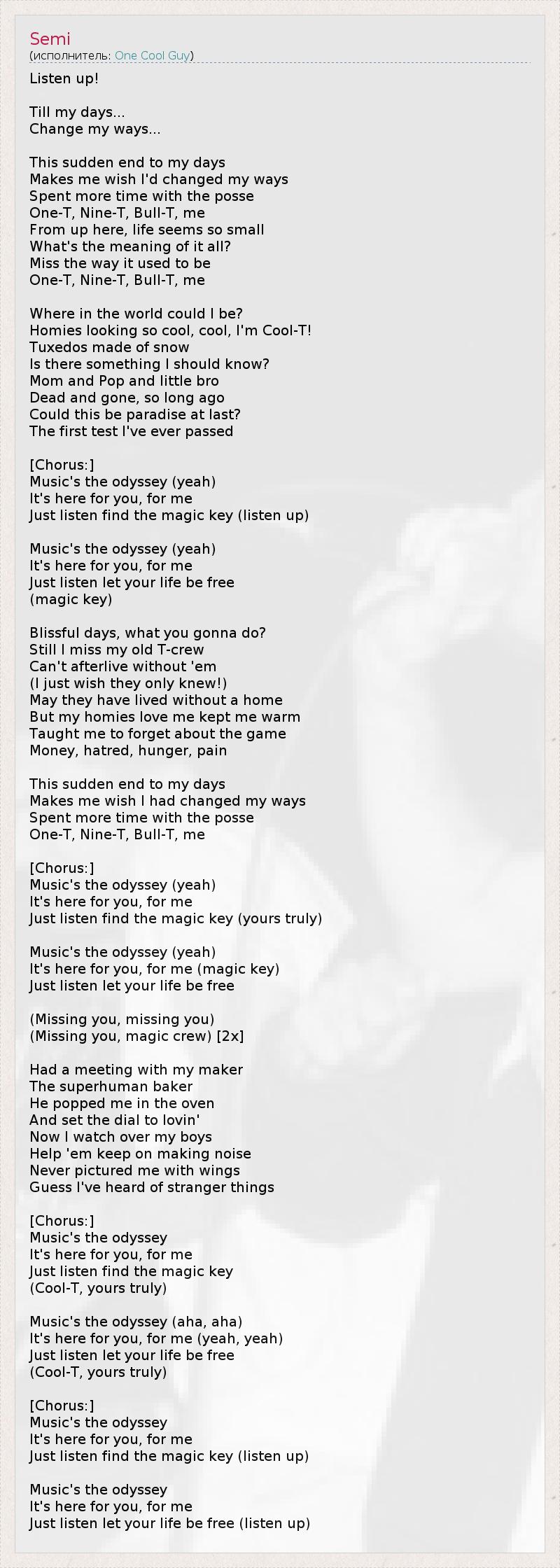 (Cool-T, искренне ваша)