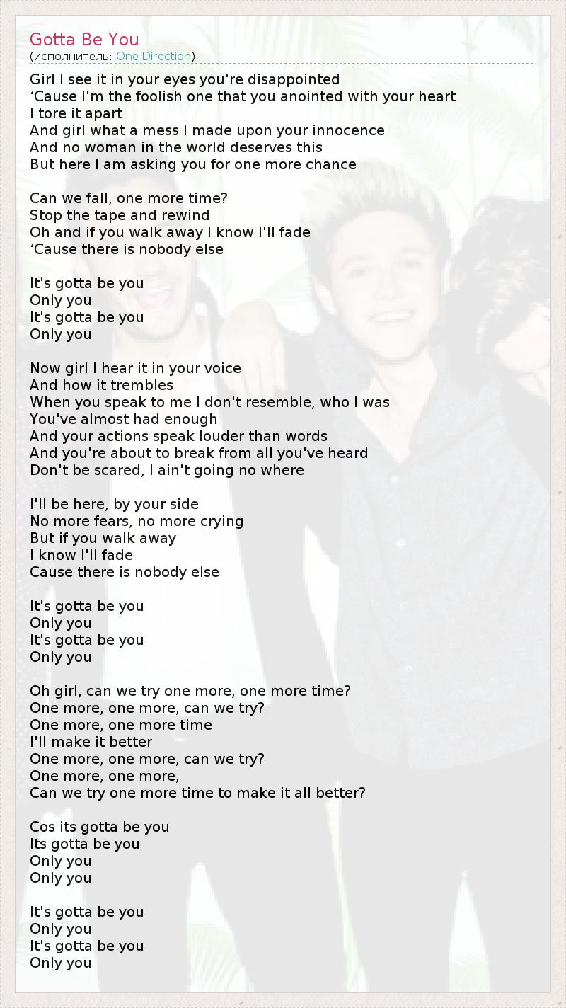 А как ты думаешь, о чем песня "Gotta Be You" ?