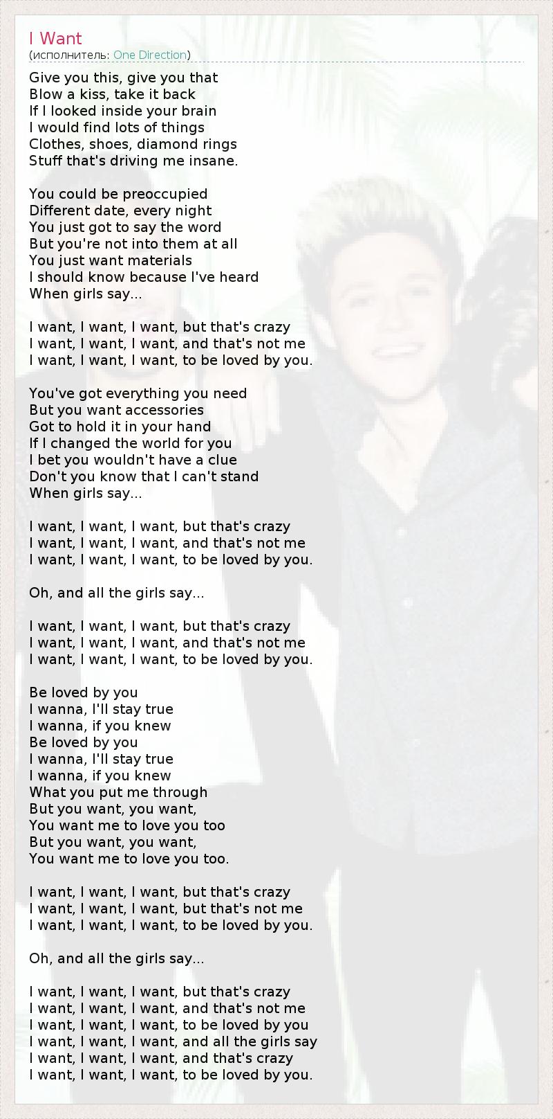 Я хочу, я хочу, я хочу, чтобы ты любил меня,