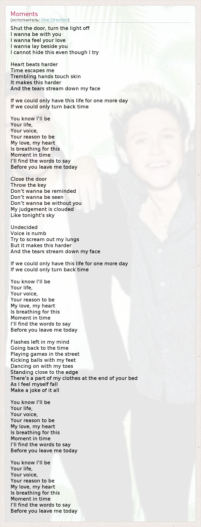 А как ты думаешь, о чем песня "Moments" ?