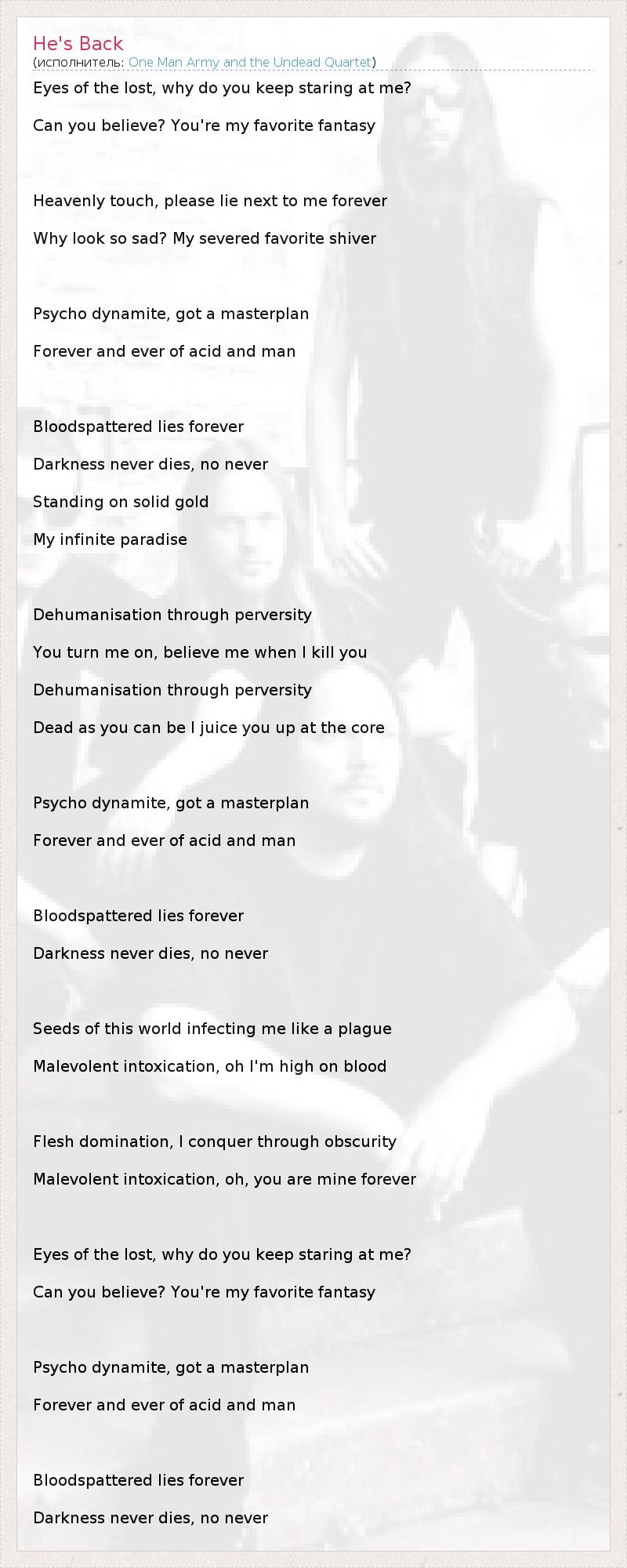 Это интересно:Эта группа организована вокалистом культовой шведской капеллы The Crown Джоаном Линдстрэндом (Johan Lindstrand) сразу после её распада. Уже летом 2004 года он начал писать музыку для нового проекта и продумывать прочие его детали. Постепенно назрела необходимость сделать демо-запись, с целью чего он связался со старым другом Валле Адзиком (Valle Adzic) (Impious). Запись была сделана в личной студии последнего... продолжение